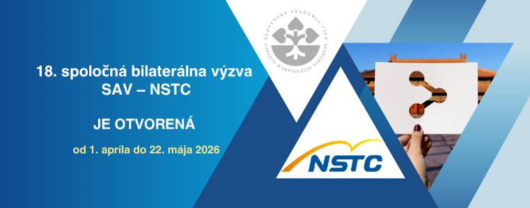 Slovenská akadémia vied a Národná rada pre vedu a technológie na Taiwane (NSTC) oznamujú vyhlásenie 18. spoločnej výzvy na predkladanie návrhov spoločných výskumných projektov SAV – NSTC, otvorenej pre všetky oblasti výskumu.
