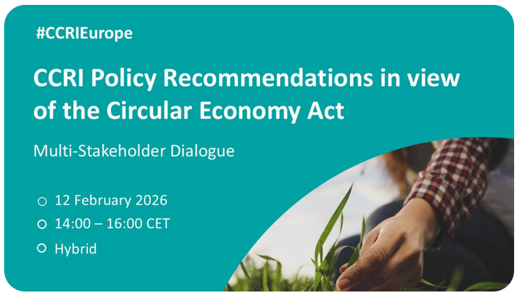Iniciatíva pre obehové mestá a regióny (CCRI) organizuje hybridný dialóg viacerých zainteresovaných strán s cieľom zhromaždiť podnety pre zákon o obehovom hospodárstve, ktorého zverejnenie sa očakáva v treťom štvrťroku 2026.