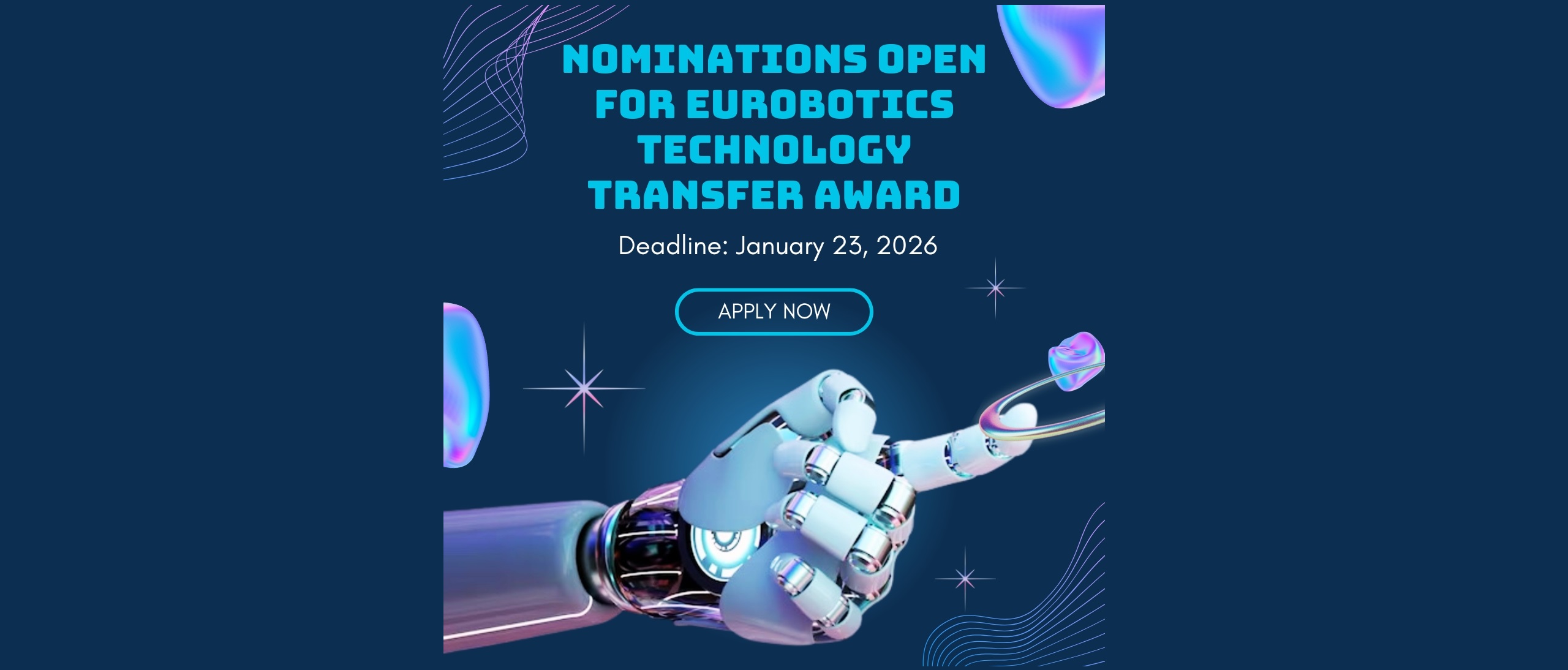 euRobotics Technology Transfer Award oceňuje úspešný transfer robotických technológií z výskumu do komerčných produktov, aplikácií a služieb. Ocenenie zvýrazňuje projekty, ktoré prinášajú reálny spoločenský dopad, napr. riešenia pre starnúcu populáciu, nedostatok pracovnej sily, udržateľnosť alebo klimatické výzvy.