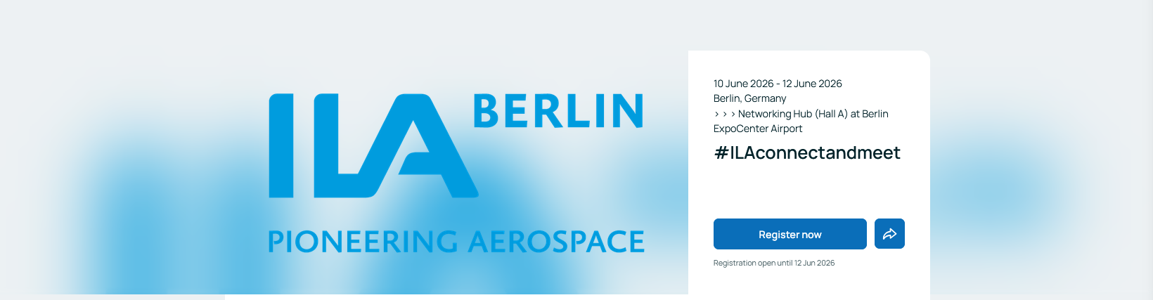Pozývame vás na matchmaking zameraný na oblasť leteckého priemyslu, ktorý sa uskutoční v rámci prestížneho medzinárodného veľtrhu ILA Berlin 2026, ktorý spája profesionálov z celého sveta v sektore letectva, vesmíru, obrany a priemyselných dodávateľov.Nájdite nových partnerov, posilnite obchodné vzťahy a premeňte príležitosti na zmluvy, všetko na jednom mieste v ILA Connect & Meet Networking Hub (hala A).