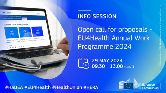 29. mája v čase 9:30 – 13:00 sa uskutoční online informačné stretnutie ohľadom kontextu politiky, cieľov a očakávaného vplyvu, ako aj postupu, ktoré súvisia s výzvou na predkladanie návrhov na granty v rámci ročného pracovného programu EÚ pre zdravie (EU4H) na rok 2024.