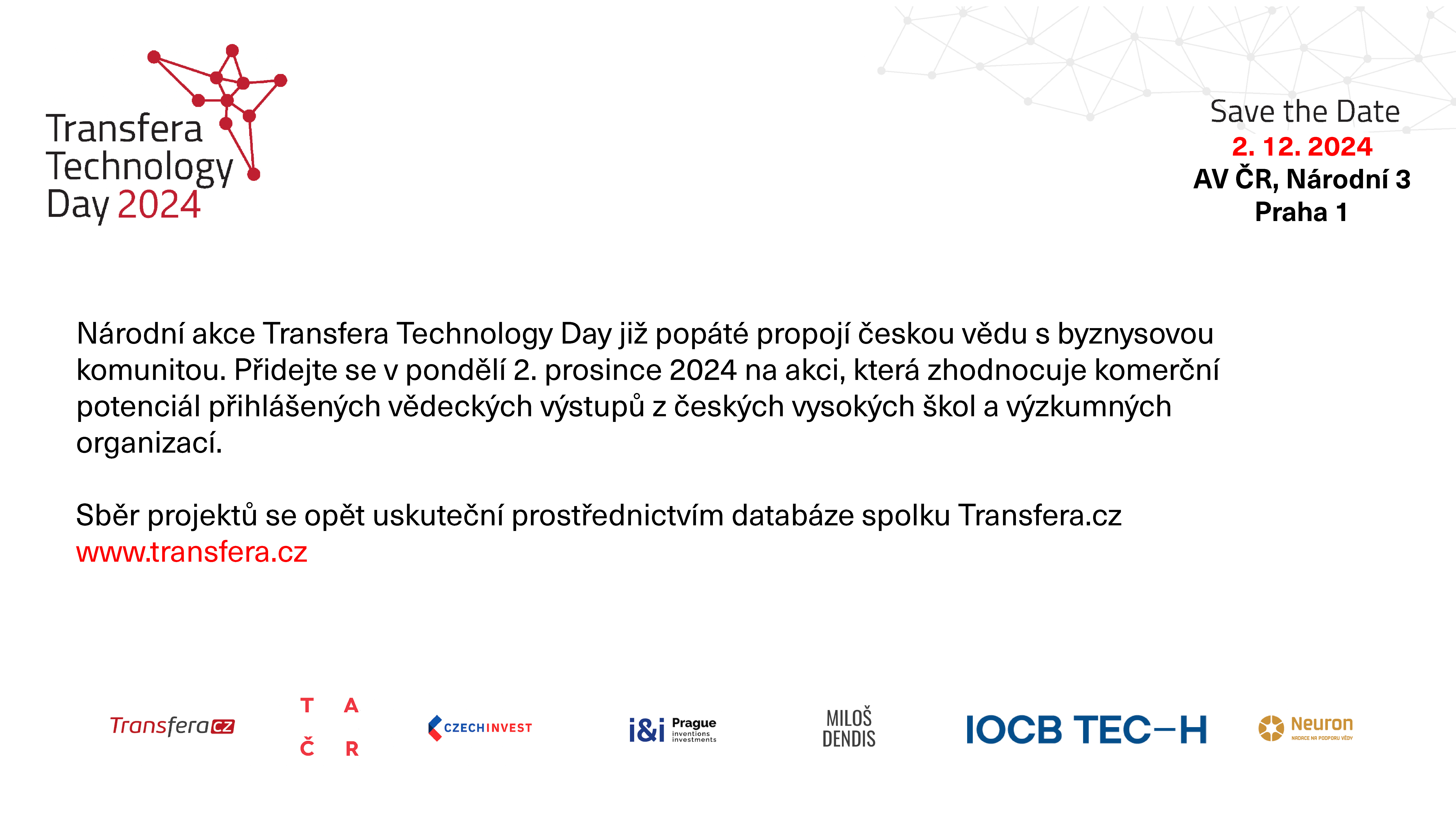 Podujatie sa bude konať 2. decembra 2024 v Prahe v budove AV ČR na Národní třídě 3.