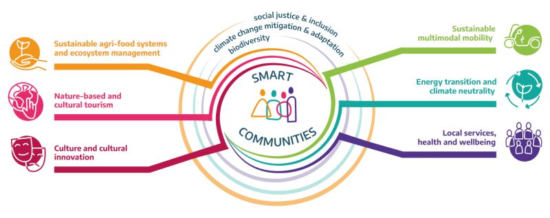- Vidieckym komunitám a združeniam, ktoré zastupujú vidiecke regióny a pôsobia ako prví používatelia riešení.