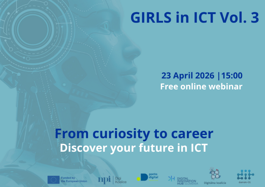 Girls in ICT Vol. 3 je medzinárodný webinár vytvorený s cieľom inšpirovať a podporiť dievčatá pri objavovaní množstva príležitostí v digitálnom svete – od kreatívnych pozícií až po technickejšie zamerania.