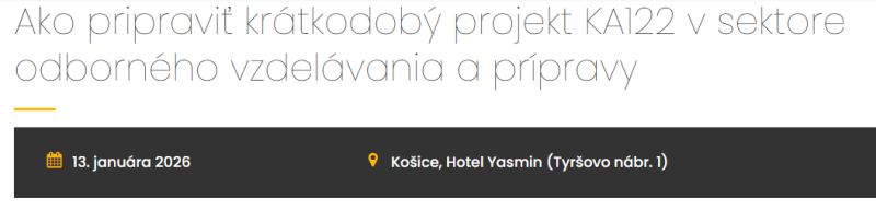 Seminár sa bude konať 13. januára 2026 v Košiciach, Hotel Yasmin (Tyršovo nábr. 1).