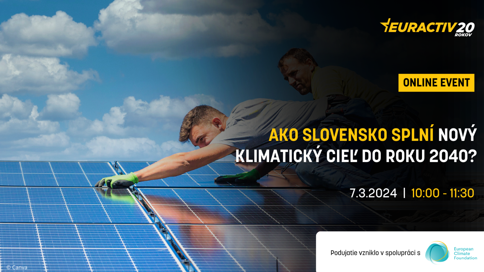 Portál EURACTIV Slovensko Vás srdečne pozýva na online diskusiu s názvom Ako Slovensko splní nový klimatický cieľ do roku 2040?, ktorá sa uskutoční 7. marca 2024 v čase od 10.00 do 11.30 prostredníctvom platformy Zoom.