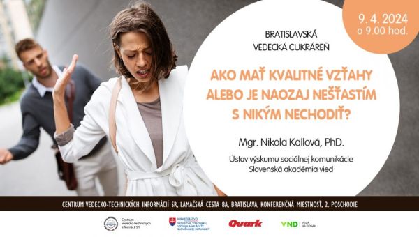 Na prednáške spoločne preberieme, či je k šťastiu skutočne potrebný partnerský vzťah. Pozrieme sa na to, či najšťastnejší ľudia na svete, skúmaní vedcami, majú alebo nemajú romantické vzťahy. Zistíme, ako sa podľa výskumov žije single ľuďom a aké výhody má život nezadaných. Oboznámime sa s niekoľkými štatistikami vedcov zo zahraničia, ktoré nám potvrdia, že na to, aby vzťahy náš život nezhoršovali, ale naopak, zlepšovali, musia spĺňať tri podmienky. O tých sa dozvieme z výskumu s mladými ľuďmi zo Slovenska a ukážeme si aj niektoré tipy a triky pre hladko fungujúce partnerstvá.