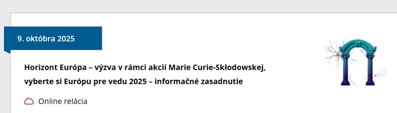 Informačné stretnutie k výzve na predkladanie návrhov v rámci iniciatívy MSCA Choose Europe for Science 2025, ktorá bude otvorená 1. októbra 2025.