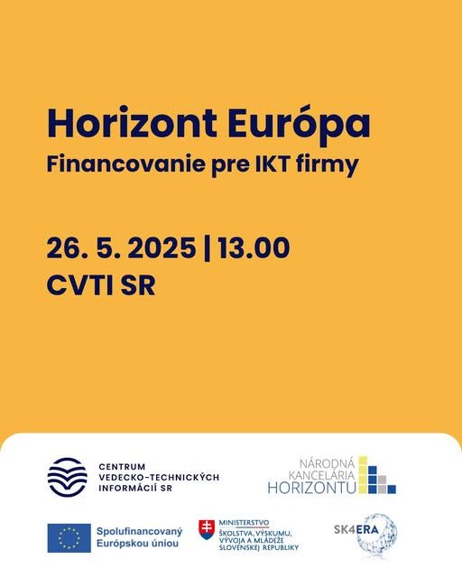 Podujatie organizuje CVTI SR a Národná kancelária Horizontu a je vhodné najmä pre startupy, MSP a firmy s výskumno-inovačným potenciálom.
