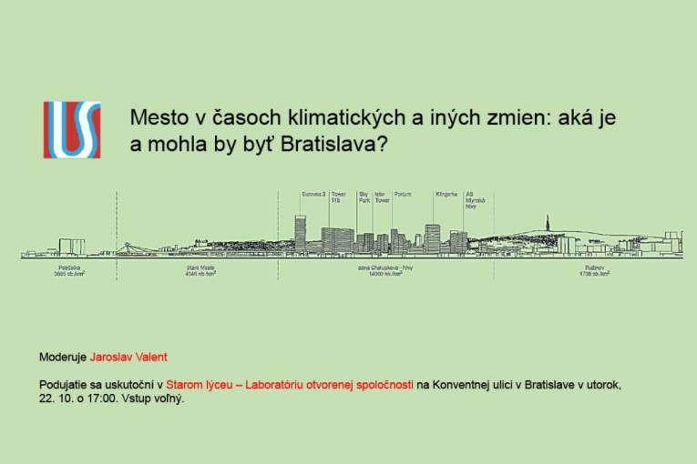 Učená spoločnosť Slovenska (UčSS) pozýva na panelovú diskusiu o Bratislave pod názvom Mesto v časoch klimatických a iných zmien: aká je a mohla by byť Bratislava?, o tom aká je a aká by mohla byť. Diskusia spojí odborníkov z oblasti architektúry, humánnej geografie a zoológie. Podujatie sa uskutoční v utorok 22. 10. o 17:00 h. v Starom lýceu – Laboratóriu otvorenej spoločnosti na Konventnej ulici v Bratislave.