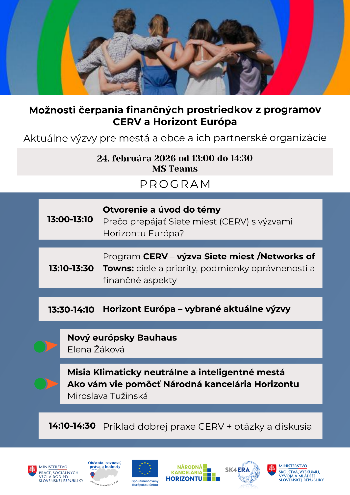 Národná kancelária Horizont a Národný kontaktný bod CERV organizujú spoločné on-line podujatie pre mestá, obce, regionálne organizácie a ďalšie relevantné organizácie.