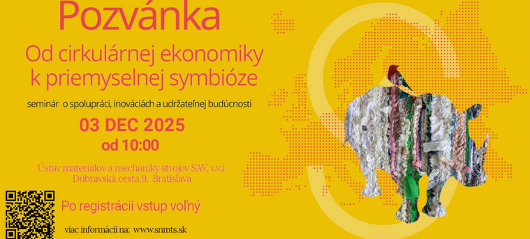 Ústav materiálov a mechaniky strojov SAV, v. v. i., pozýva odbornú aj širšiu verejnosť na odborný seminár zameraný na priemyselnú symbiózu – moderný prístup, ktorý mení spôsob, akým krajiny využívajú zdroje, nakladajú s odpadom a prepájajú priemyselné odvetvia.