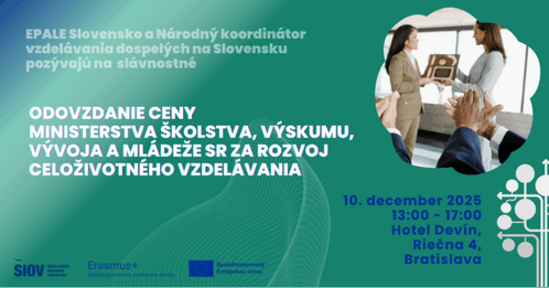 EPALE Slovensko a Národný koordinátor vzdelávania dospelých vás srdečne pozývajú na slávnostné odovzdávanie Ceny Ministerstva školstva, výskumu, vývoja a mládeže SR za rozvoj celoživotného vzdelávania.