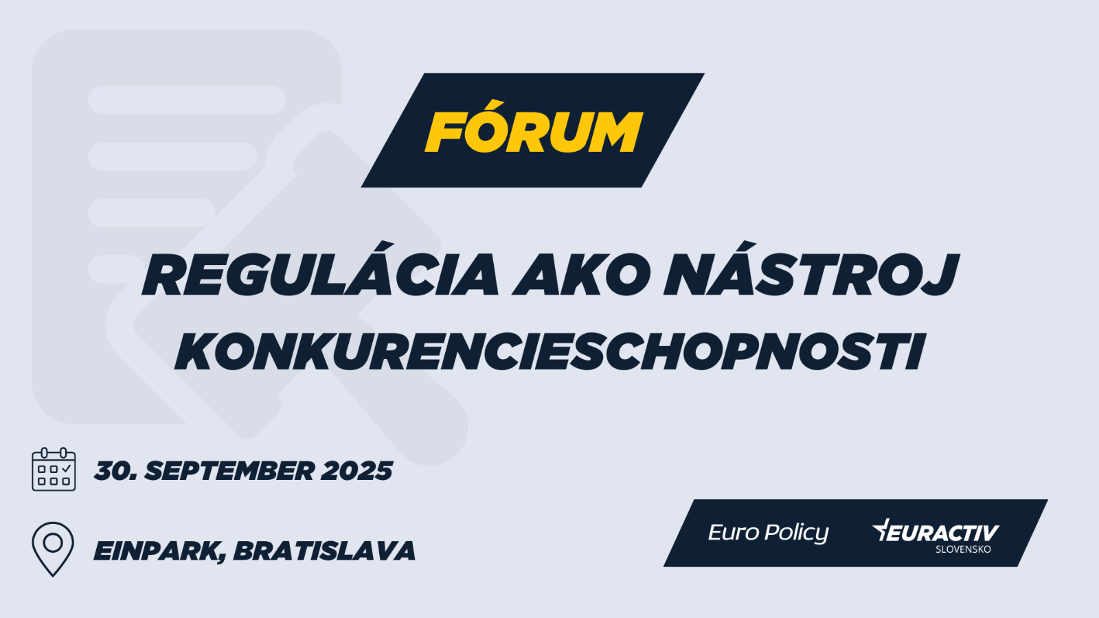 Občianske združenie EuroPolicy a portál EURACTIV Slovensko vás pozývajú na odborné fórum, ktoré sa zameria na úlohu regulácie pri posilňovaní konkurencieschopnosti Slovenska aj Európskej únie.