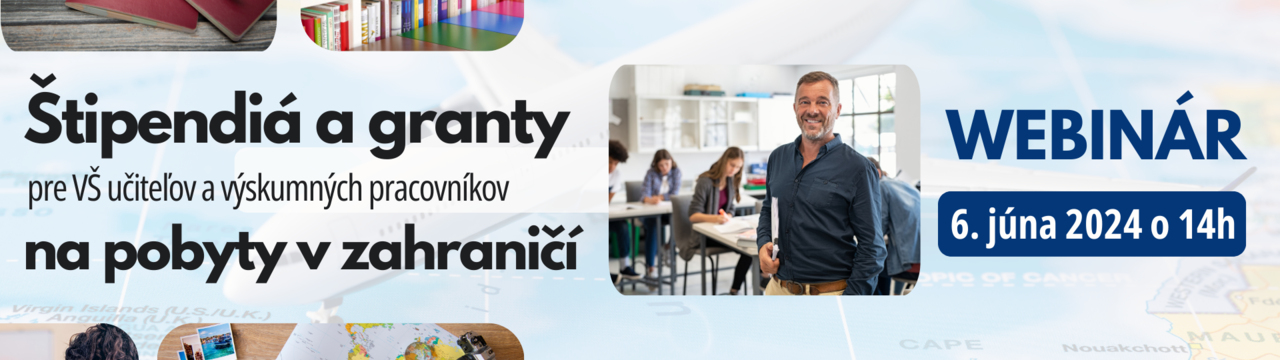 SAIA, n. o. Vás pozýva na webinár: Štipendiá a granty pre vysokoškolských učiteľov a výskumných pracovníkov na pobyty v zahraničí dňa 6. júna 2024 (štvrtok) o 14:00h.