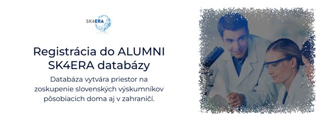 Alumni databáza je dôležitým nástrojom v rámci projektu SK4ERA. Vytvára priestor na zoskupenie slovenských výskumníkov pôsobiacich doma aj v zahraničí, s cieľom zvýšiť účasť Slovenska v medzinárodných výskumných projektoch. Prihlásením do Alumni SK4ERA máte možnosť získať nasledujúce výhody: