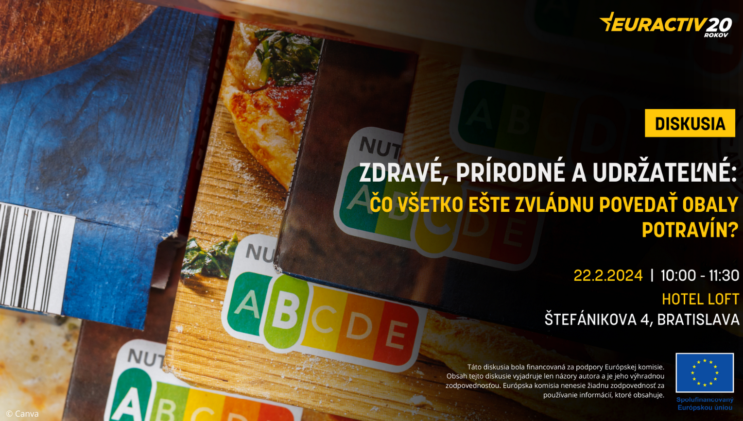 Portál EURACTIV Slovensko Vás pozýva na diskusiu s názvom Zdravé, prírodné, udržateľné: Čo všetko ešte zvládnu povedať obaly potravín, ktorá sa uskutoční v dátume 22.2.2024 v čase od 10:00 do 11:30 v priestoroch Hotela Loft (Štefánikova 4, Bratislava).